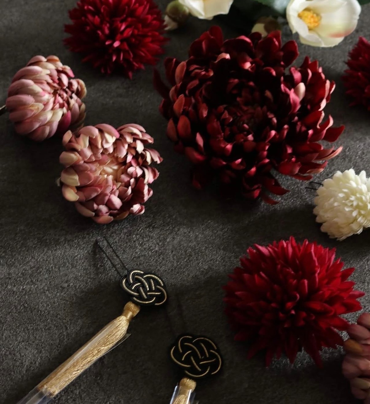 成人式のお振袖や卒業式の袴姿など、お着物に合わせてオーダーメイドのアーティフィシャルフラワー髪飾りをお作り致します。