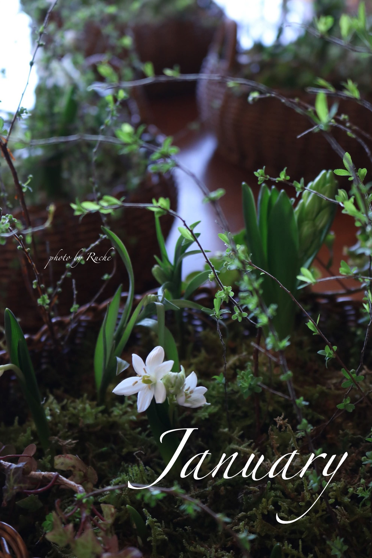 1月 球根と苔の水耕栽培アレンジメント