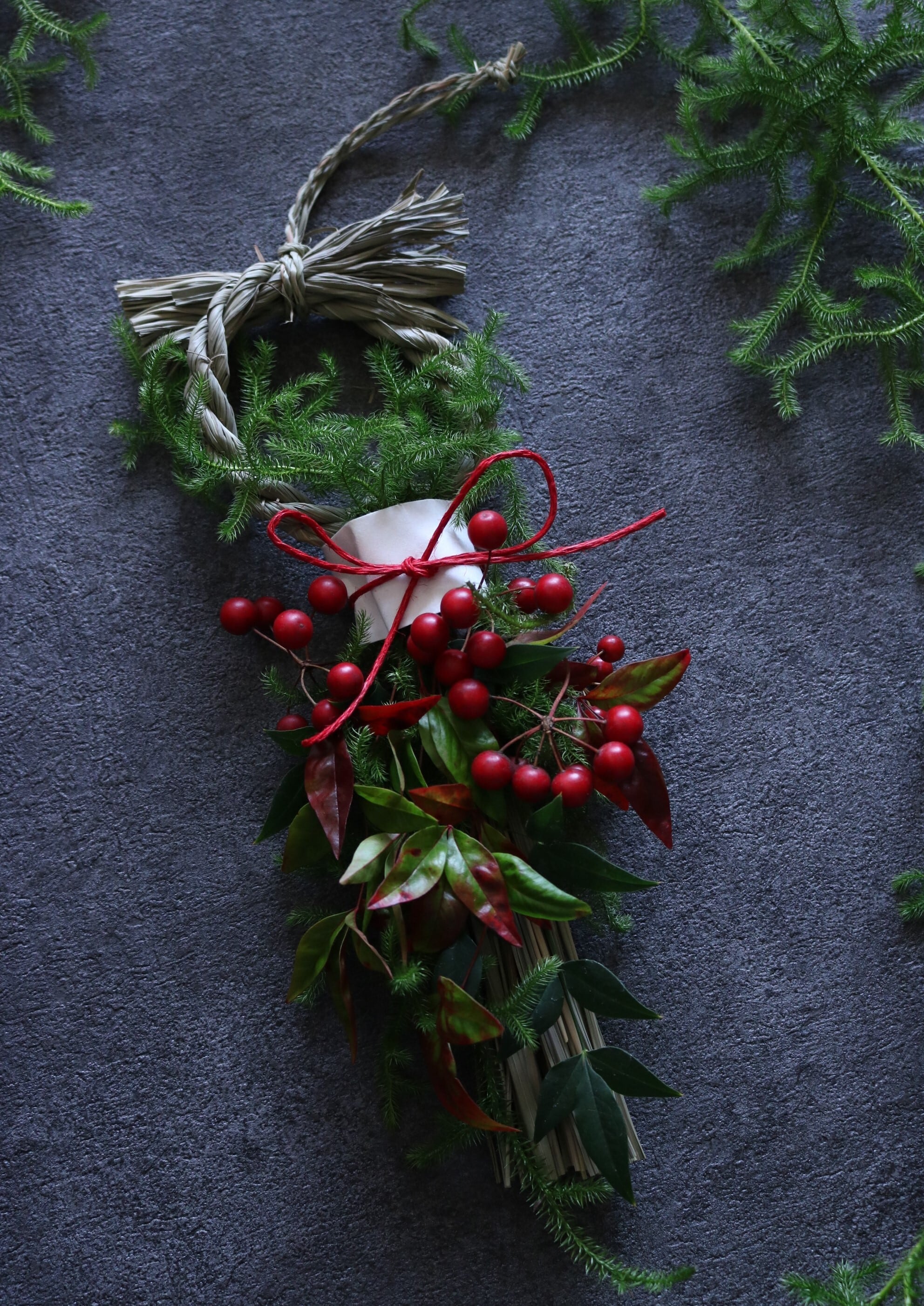 30cm程の大きさながらもたっぷりと晴れやかな赤い実を纏ったお飾りでお正月をお迎え下さい。